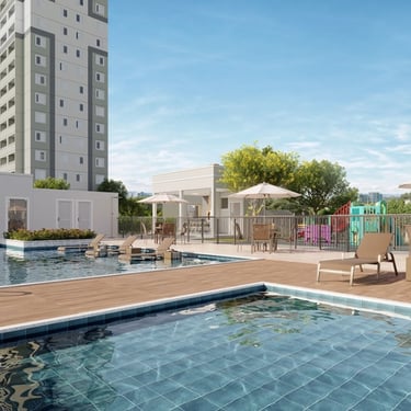 2 Dormitórios: 43,93 m² | 44,13 m² | 45,5 m² | 45,7 m²*