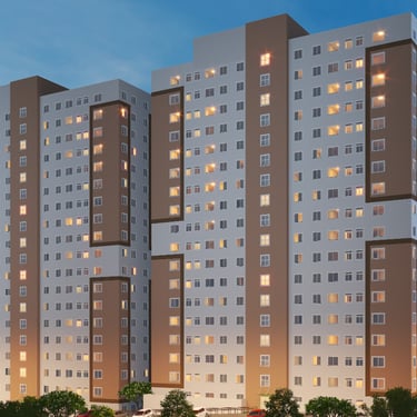 2 Dormitórios: 36,86 m² | 37,08 m² | 39,95 m² | 40,17 m²*